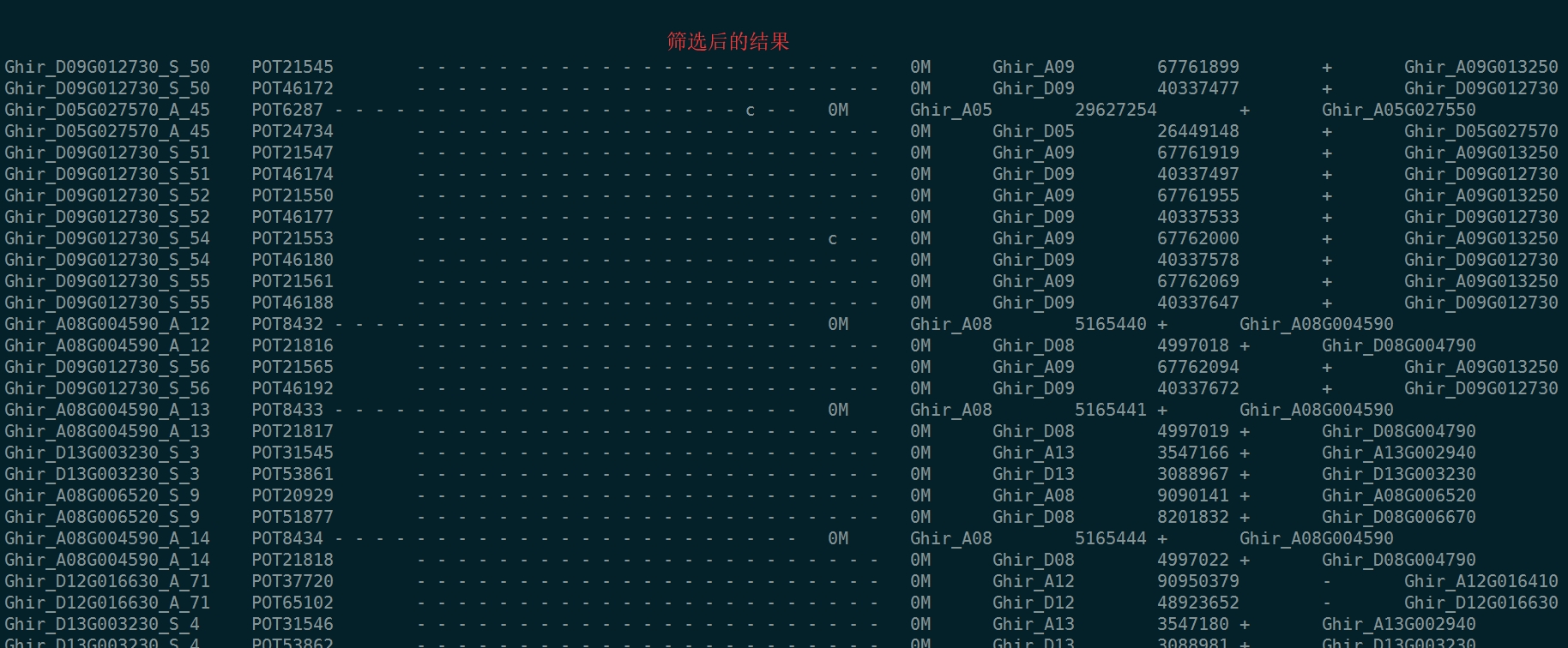 最后将同一个sgRNA靶标的权值相加,为0则表示没有脱靶;否则脱靶舍弃