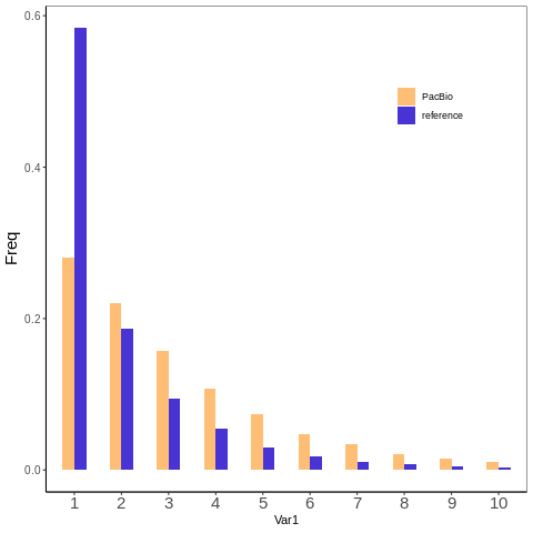 mergeData <- rbind(pacBioData, referenceData)绘制直方图