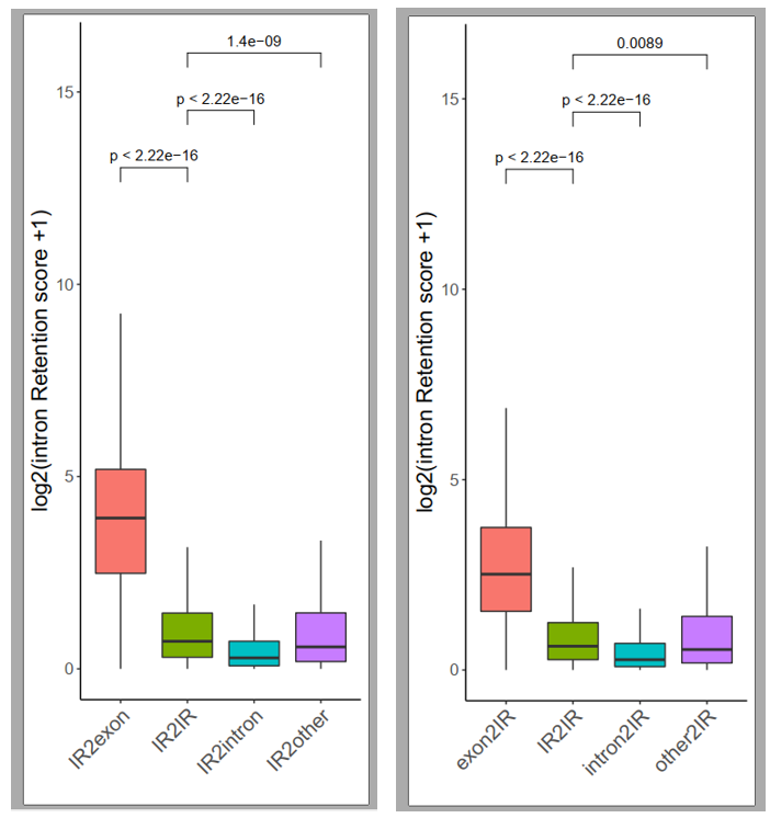 分析那些在祖先中没有发生AS,而多倍化之后发生IR的基因