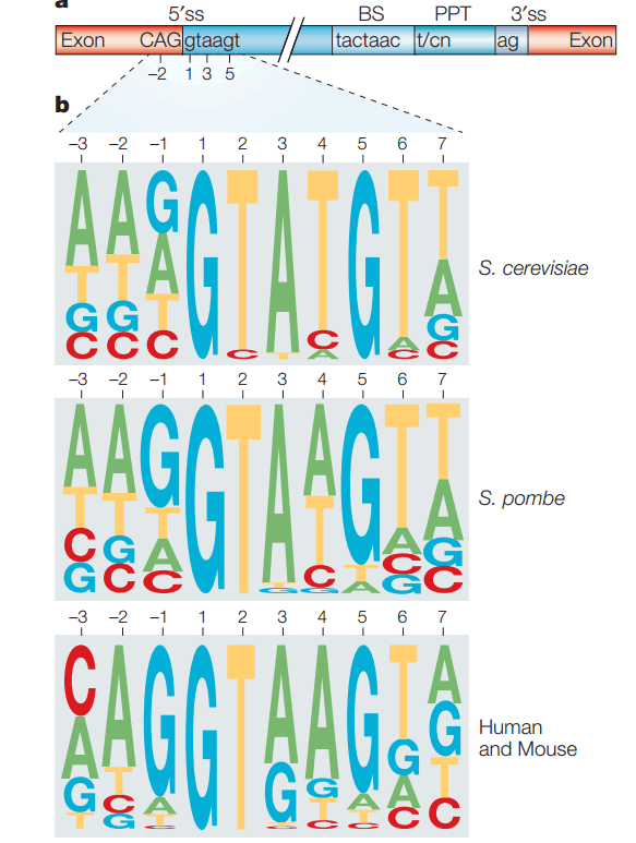 虽然内含子在大多数真核生物的基因组中都存在,但是可变剪切在多细胞生物中更加普遍。在酵母细胞中大约只有3%的基因包含内含子,只有6个基因包含2个内含子。但在另外一种酵母中,约有43%的基因包含内含子,并且许多基因包含多个内含子;但是在这些生物中却没有可变剪切。通过比较基因组学数据发现,在不同的生物中序列水平上的保守性,表明这个精力了净化选择,可能有重要的功能。