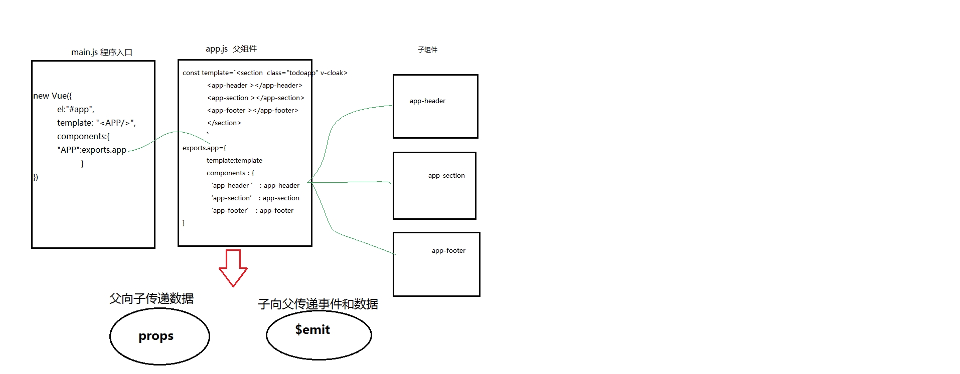 <app-section :todos="filterTodos"></app-section> //子组件中声明对应的属性 exports.appSection={ props:['todos','toggleAll'] }