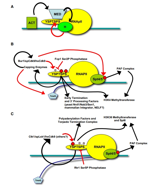基因的表达依赖于转录过程中RNA聚合酶II的不同功能,根据功能的不同将转录分成了3个阶段:1.转录起始、2.延伸、3.终止。那么问题来了,RNA聚合酶II是如何识别基因不同的位置信号来执行不同的功能的呢?